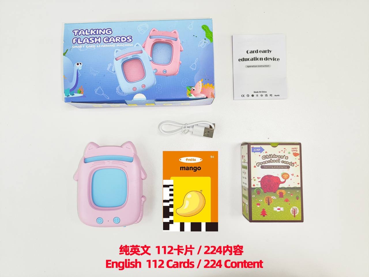 112PC CARD 224 WORDS KIDS LEARNING EDUCATIONAL DEVICE CAT DESIGN 2 (300mah battery)